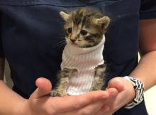 There are cute cats. There are cute kittens. But this rescued kitten wearing a sock fashioned into to a turtleneck sweater might be one of the most adorable things we’ve